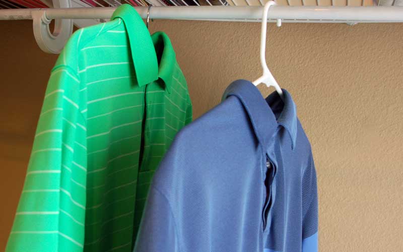 People often incorrectly expect one drawback to Higher Hangers™: they think that Higher Hangers™ won't work with collared shirts. Actually, Higher Hangers™ are carefully designed to allow for enough clearance for your collared shirts (take a look for yourself). Higher Hangers™ will work with any kind of clothing you would normally use with a traditional clothes hanger: pants, tee shirts, collared shirts, jackets, anything you can think of.